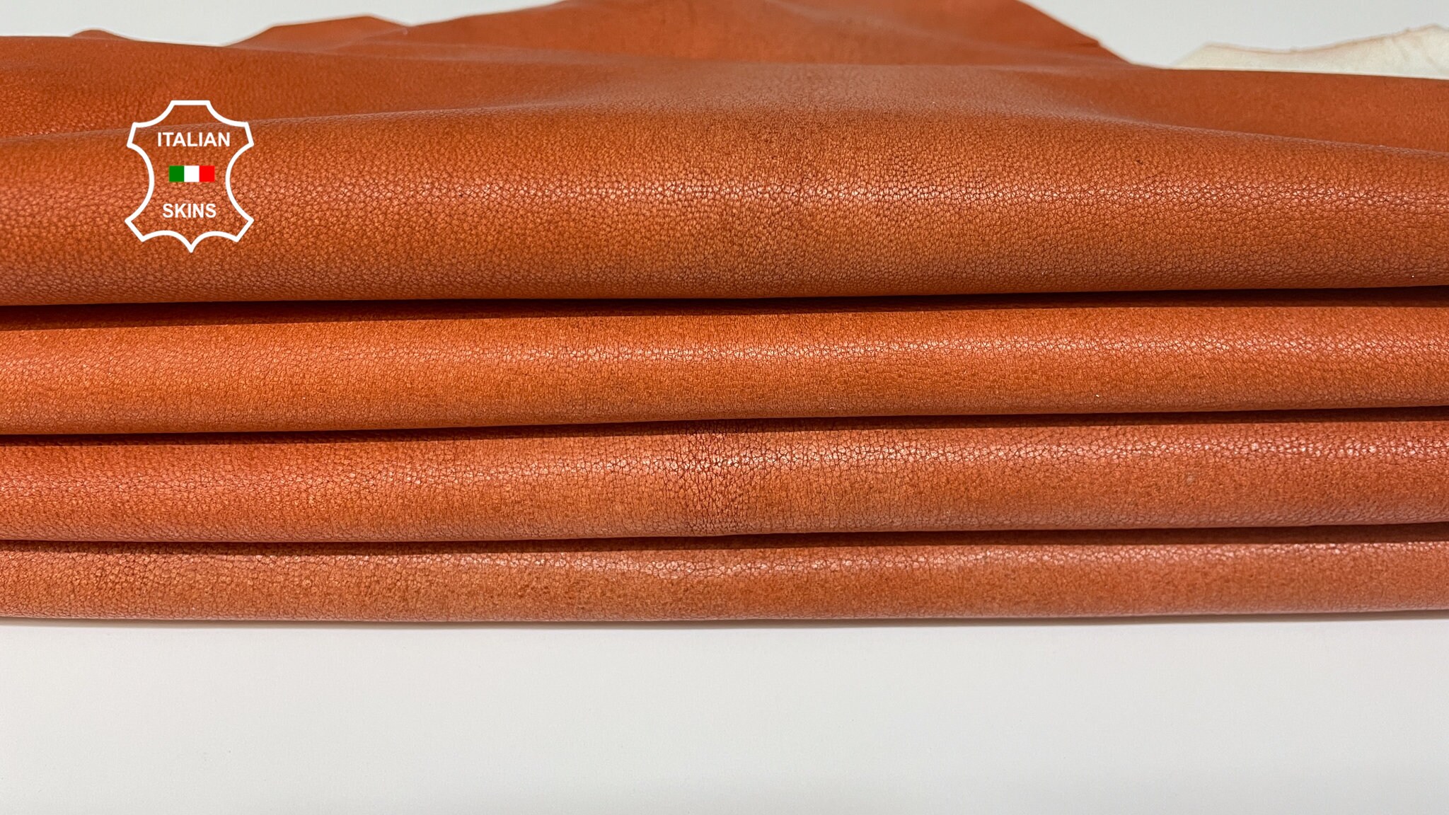 NATURAL PUMPKIN ORANGE Rough Thick Italian Goatskin Leather pack 2 skins total 10sqf 1.1mm #B716