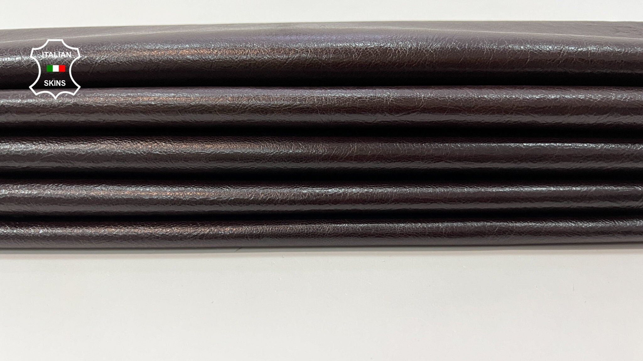 CHESTNUT BROWN CRINKLED Shiny Glossy Soft Italian Goatskin Leather pack 2 skins total 10+sqf 0.8mm #B9898