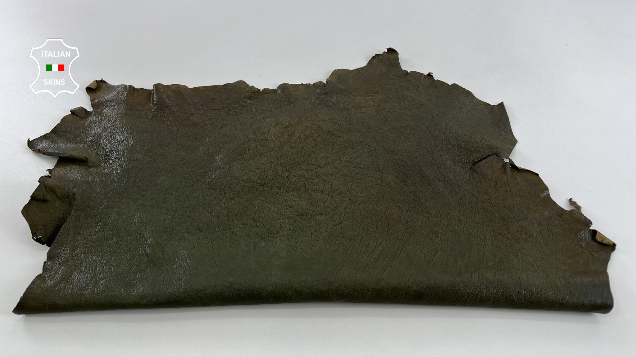 OLIVE ARMY ROUGH Very Used Vintage Look Vegetable Tan Italian Goat Leather skin 5sqf 0.9mm #C560