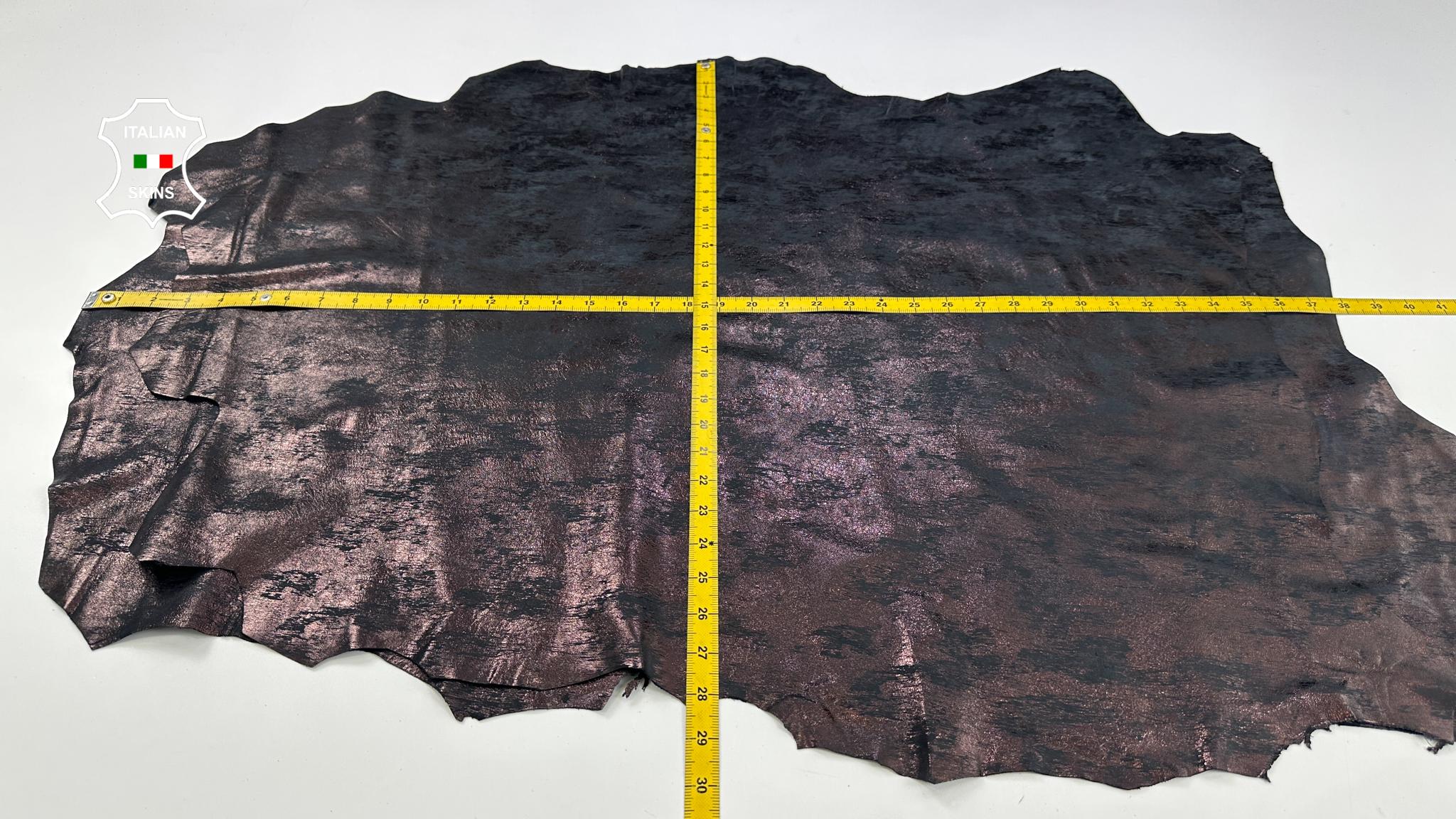METALLIC RAISIN DISTRESSED On Black Thin Soft Italian Lambskin Leather pack 2 skins total 12sqf 0.6mm #C2222