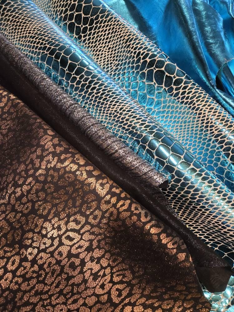 Delivered Duty Paid-METALLIC TURQUOISE BLUE Crinkled Soft Italian Lambskin Sheep leather pack 2 skins total 8sqf 0.9mm #C5130